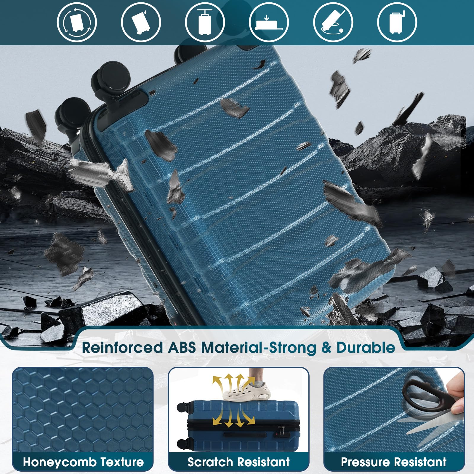 - Durable Hardshell ABS Luggage: Crafted from lightweight yet impact-resistant ABS, this hardcase suitcase features a unique honeycomb texture combined with raised horizontal ridges. The upgraded shell enhances scratch resistance and long-term durability, helping your luggage stay looking new after every trip.