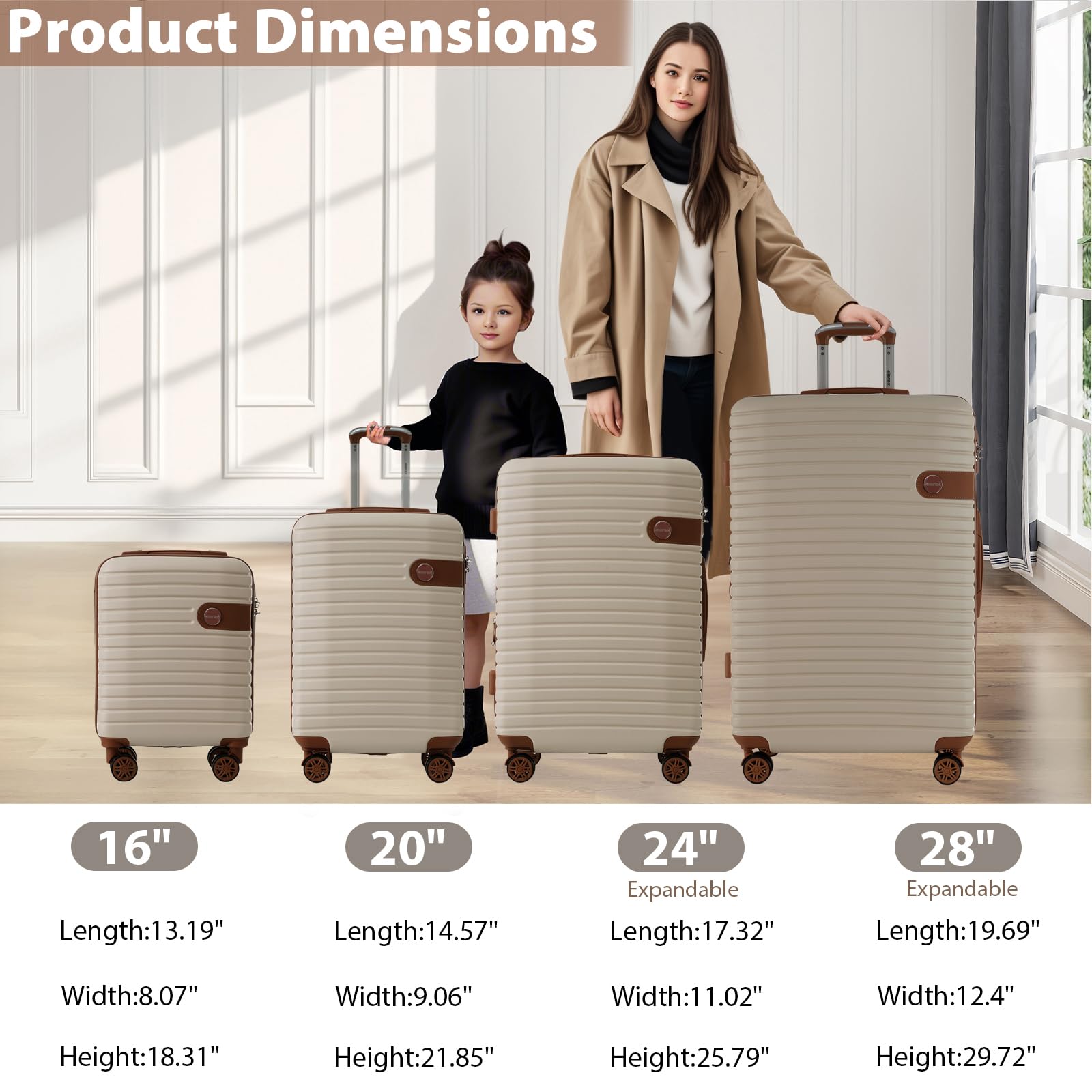- 【Expandable & TSA-Approved】The 24" and 28" suitcases feature an expandable design, offering up to 15% extra space. Perfect for bringing back souvenirs or packing a little more for longer trips. And with a reliable TSA-approved lock, your belongings are safe and secure, giving you peace of mind while traveling.
